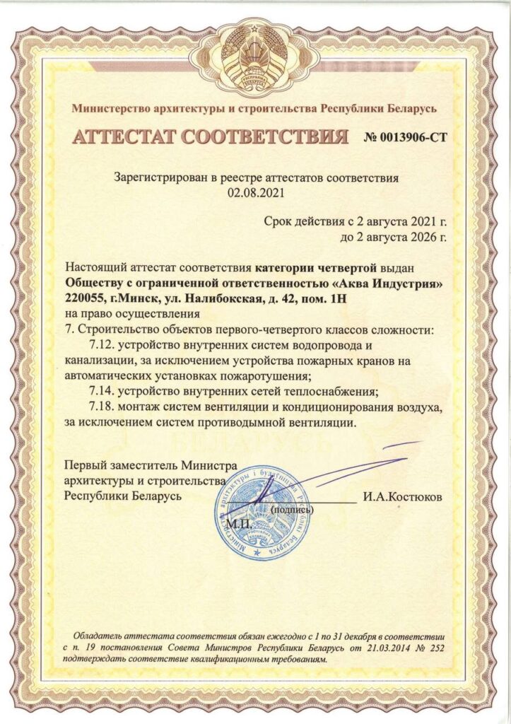 ООО «Аква Индустрия» — надежная, добросовестная и честная сантехническая компания Минска. Наше высокое качество услуг достигается благодаря нашей ответственности перед каждым клиентом и богатому опыту работы в этой отрасли.